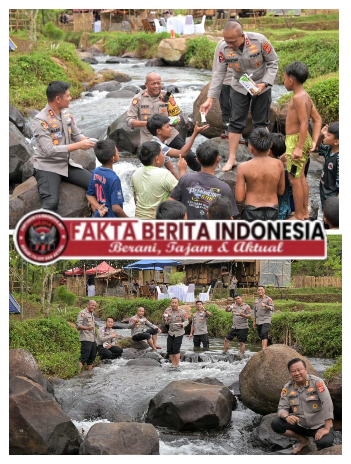 Raut kebahagiaan tampak jelas dari wajah anak-anak yang tengah bermain air di sungai. Tawa polos dan keceriaan mereka semakin terpancar ketika Kapolda Jawa Barat, Irjen Pol. Dr. Rudy Setiawan, S.I.K., S.H., M.H., menyempatkan diri untuk menyapa sekaligus memberikan cuan kanyaah serta makanan ringan kepada anak-anak tersebut, Jum’at (16/1/2026)
