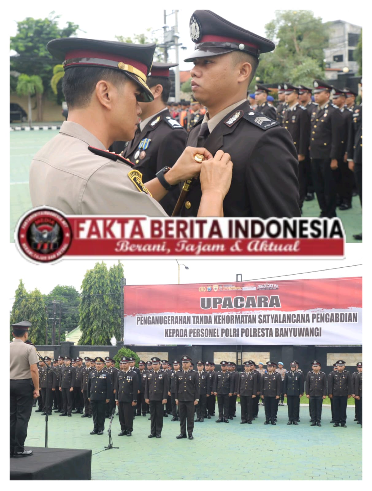 Sebanyak 72 personel Polresta Banyuwangi menerima Tanda Kehormatan Satyalancana Pengabdian, dengan rincian 5 personel masa dinas 32 tahun, 25 personel masa dinas 24 tahun, 13 personel masa dinas 16 tahun, dan 29 personel masa dinas 8 tahun.
