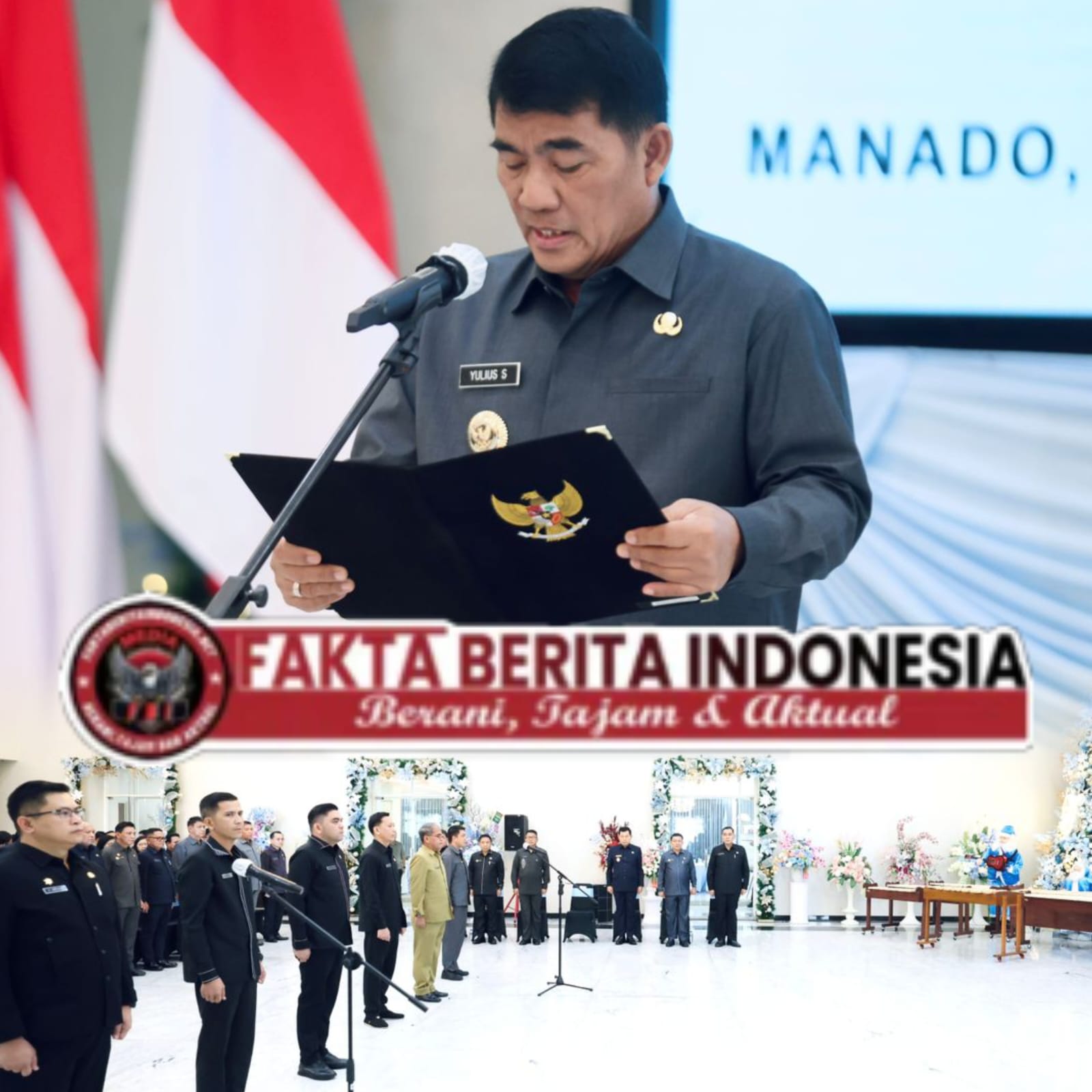 Faktaberitaindonesia.net, Manado-Gubernur Sulawesi Utara, Mayjen TNI (Purn) Yulius Selvanus Komaling, memimpin langsung upacara pengambilan sumpah jabatan sejumlah pejabat Administrator di lingkungan Pemerintah Provinsi Sulawesi Utara. Kegiatan tersebut berlangsung di Wisma Negara Bumi Beringin, Manado, Selasa (30/12/2025), dan menjadi penanda dimulainya babak baru penyegaran birokrasi di lingkup Pemprov Sulut.