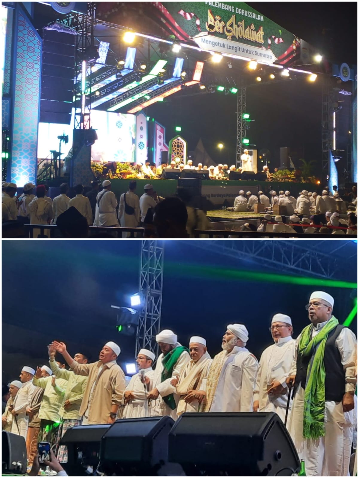 Habib Syech dan Gubernur Herman Deru Walikota Ratu Dewa mengajak warga kota Palembang bersholawat untuk mendoakan warga Sumatera