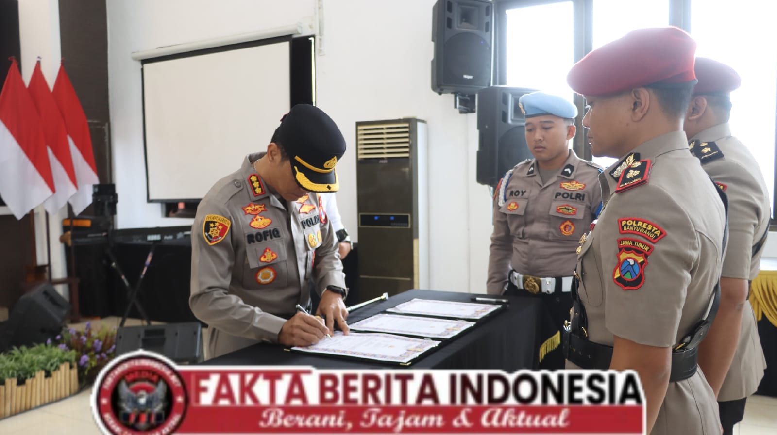 Faktaberitaindonesia.net, Banyuwangi – Kapolresta Banyuwangi Kombes Pol Dr. Rofiq Ripto Himawan, S.I.K., S.H., M.H., memimpin langsung upacara serah terima jabatan (sertijab) sejumlah Kasat dan Kapolsek jajaran Polresta Banyuwangi, Kamis pagi (20/1/2026), di Gedung Rupatama Wira Pratama Polresta Banyuwangi.