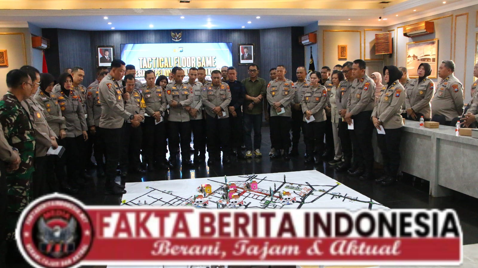 Pada H-1 kegiatan Mujahadah Kubro 1 Abad NU, Kapolresta Malang Kota, Kombes Pol Putu Kholis Aryana didampingi Kabag Ops Kompol Wiwin Rusli memimpin Tactical Floor Game (TFG) di Ballroom Sanika Satyawada, Jumat (06/02/2026).