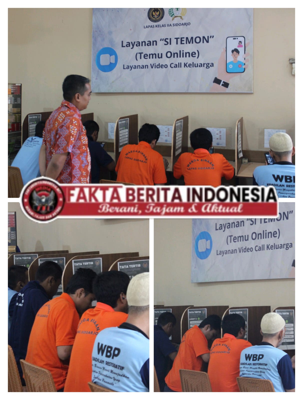 Faktaberitaindonesia.net, Sidoarjo – Lembaga Pemasyarakatan Kelas IIA Sidoarjo Kantor Wilayah Direktorat Jenderal Pemasyarakatan Jawa Timur terus berkomitmen memberikan pelayanan terbaik bagi Warga Binaan Pemasyarakatan (WBP), salah satunya melalui penyediaan layanan video call gratis sebagai sarana komunikasi dengan keluarga.