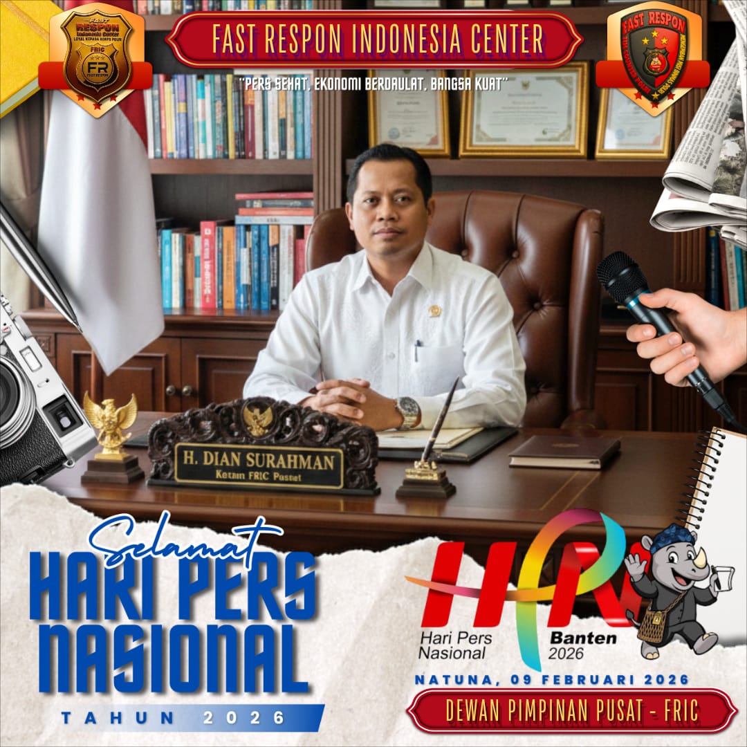Faktaberitaindonesia.net, JAKARTA – Hari Pers Nasional (HPN) 2026 menjadi momentum yang tepat bagi insan pers untuk merefleksikan peran dan tanggung jawabnya dalam membangun bangsa. H. Dian Surahman, Ketua Umum DPP FRIC Pusat, menyampaikan doa dan motivasi kepada seluruh insan pers di Indonesia.