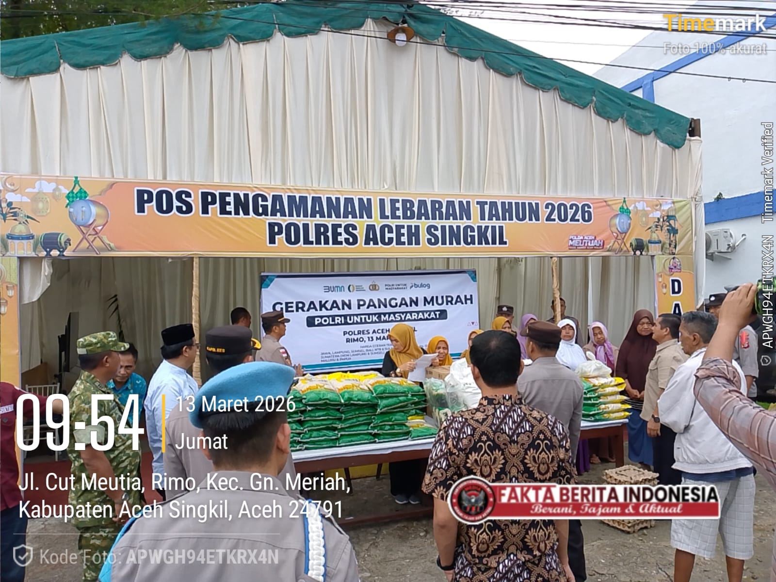 Faktaberitaindonesia.net, Aceh Singkil -Pemerintah Kabupaten Aceh Singkil bersama Polri menggelar kegiatan Gerakan Pangan Murah yang dilaksanakan secara serentak di seluruh Indonesia dalam rangka menyambut Hari Raya Idul Fitri 1447 Hijriah. Kegiatan tersebut berlangsung di Pos Lantas Simpang Empat, Kecamatan Gunung Meriah, Kabupaten Aceh Singkil., Jum’at {13/03/2026}