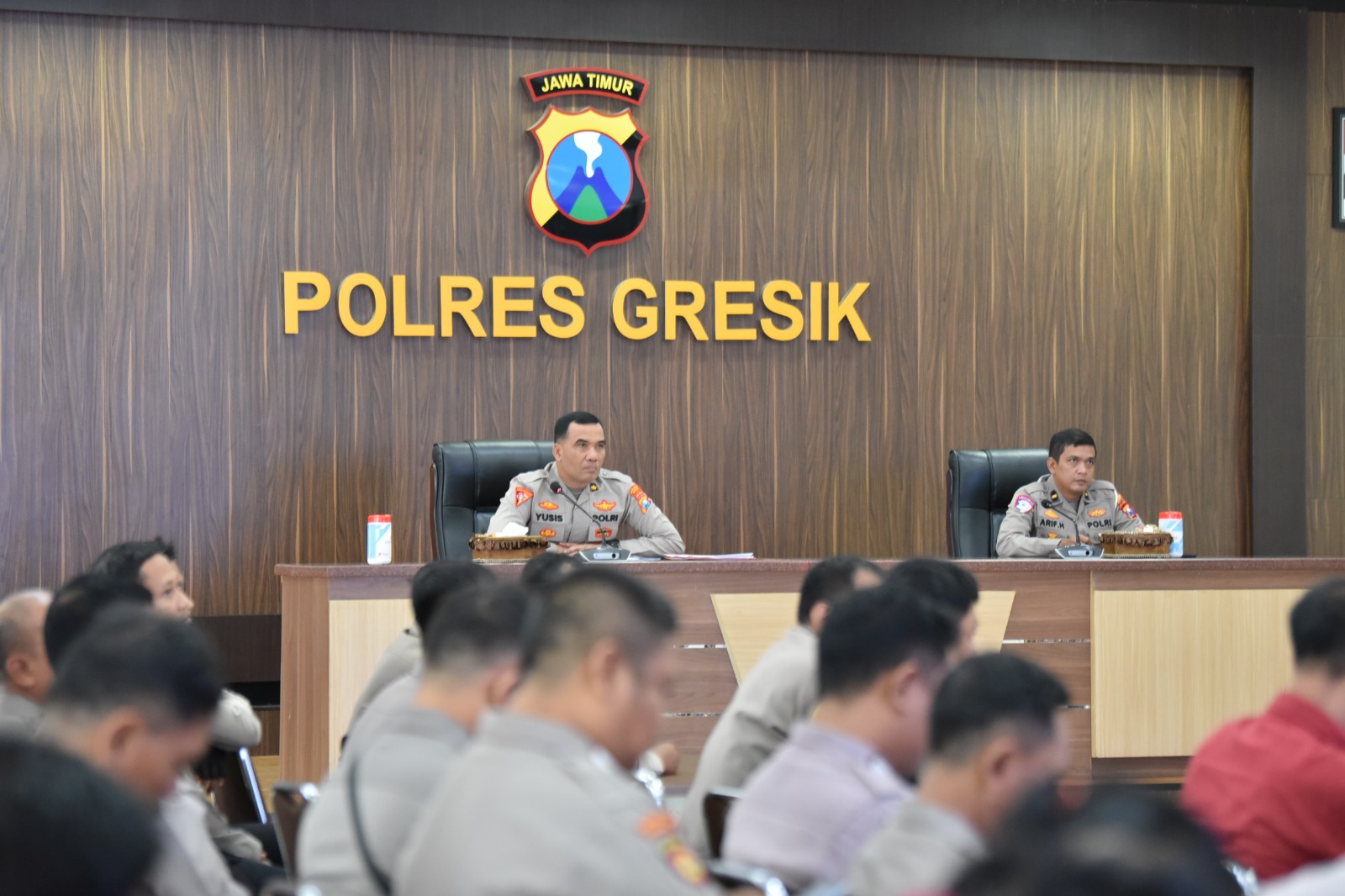 Kegiatan ini dipimpin langsung oleh Wakapolres Gresik Kompol Shabda Purusha Putra, didampingi Kabag Ops Kompol Yusis Budi Krismanto, serta diikuti para pejabat utama, kasatgas, dan perwira yang terlibat dalam struktur Operasi Ketupat Semeru 2026.