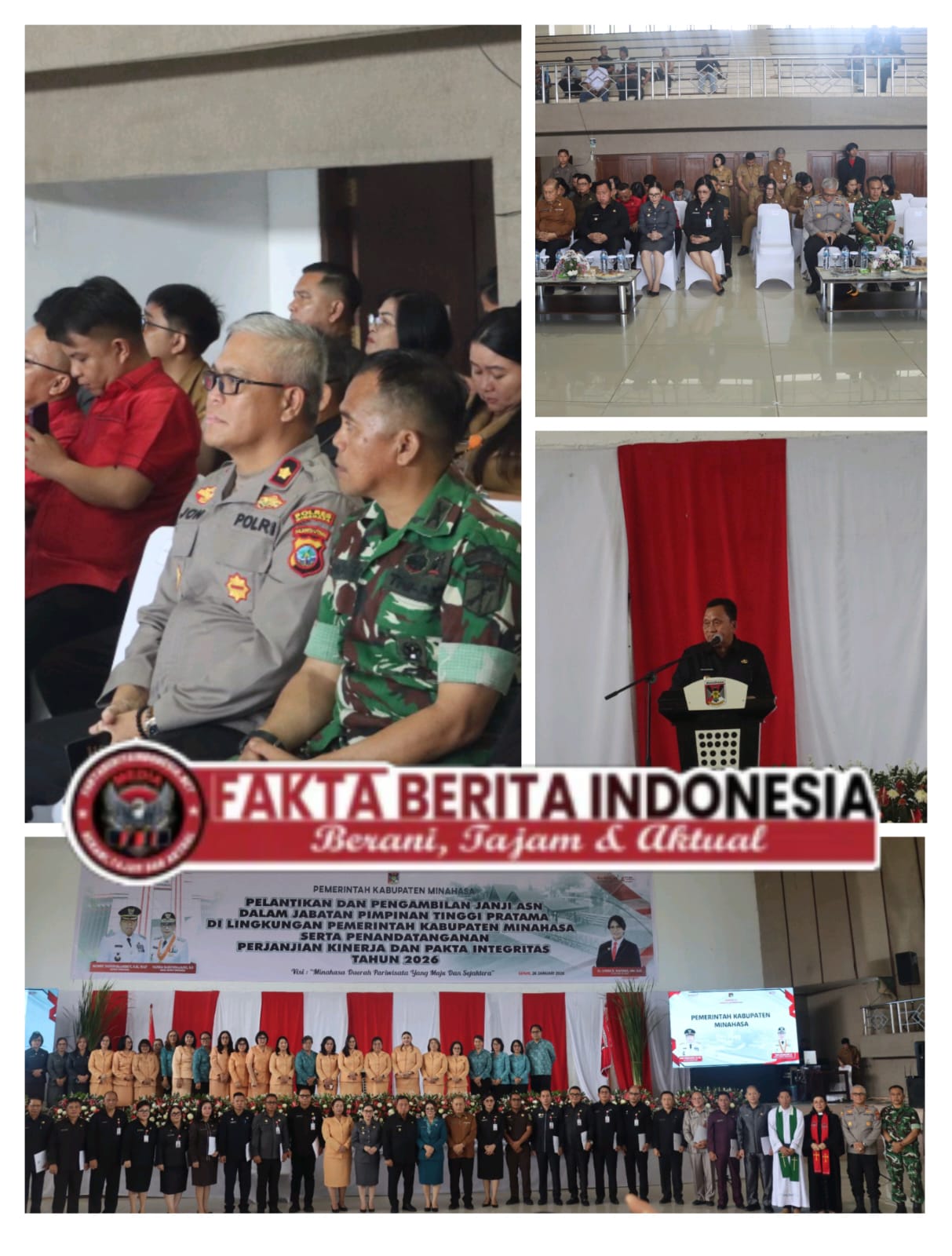 Faktaberitaindonesia.net, Minahasa – Suasana Gedung Wale Ne Tou di Kelurahan Sasaran, Kecamatan Tondano Utara, Minahasa, Senin (26/1/2026) pagi dipenuhi semangat dan antusiasme. Tepat pukul 10.00 WITA, Pemerintah Kabupaten Minahasa melaksanakan pengambilan sumpah/janji Aparatur Sipil Negara (ASN) Jabatan Pimpinan Pratama yang menjadi momen penting bagi penyegaran birokrasi di daerah.
