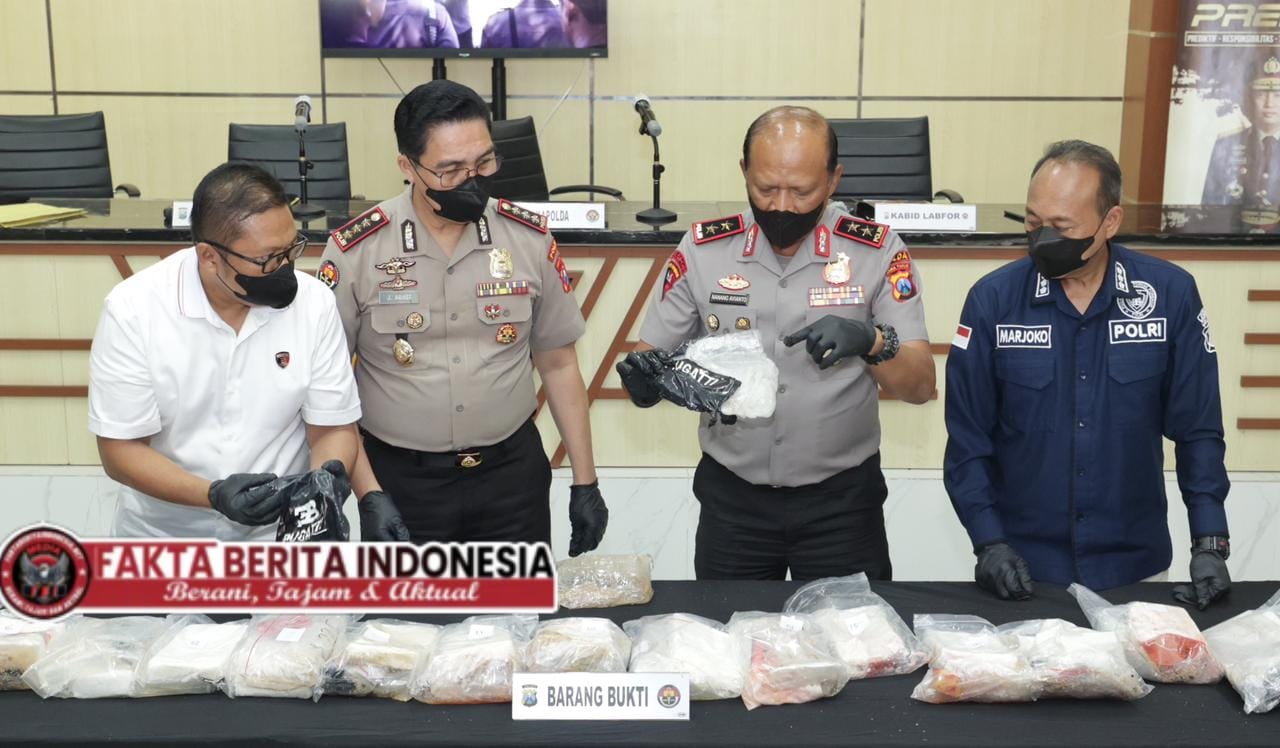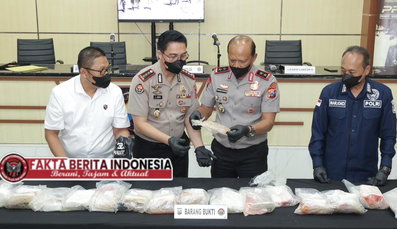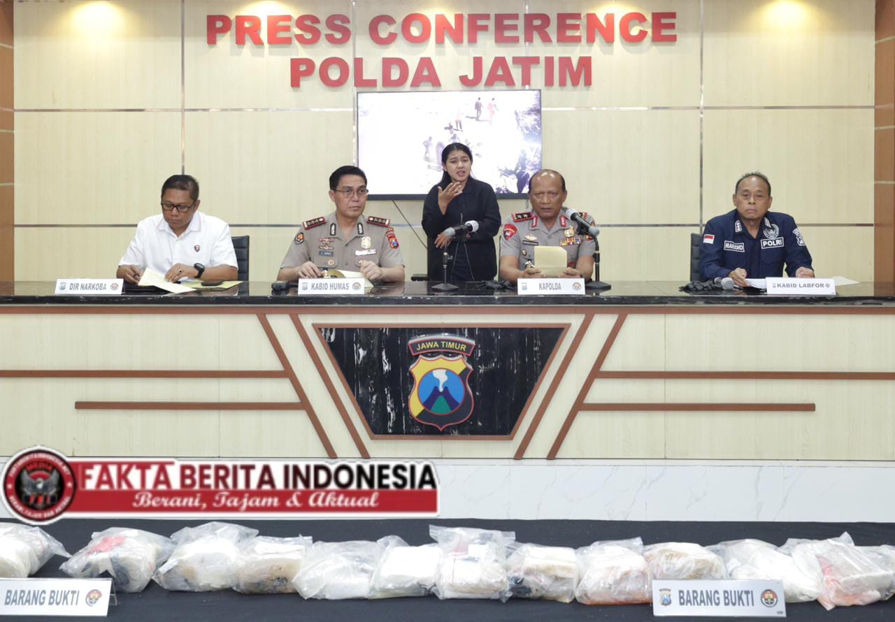Faktaberitaindonesia.net, Surabaya – Polda Jawa Timur melalui Polres Sumenep mengamankan barang temuan yang diduga narkotika dengan berat total sekitar 27,83 kilogram di wilayah pesisir Pantai Pasir Putih Kahuripan, Dusun Lombi Timur, Desa Gedugan, Kecamatan Giligenting, Kabupaten Sumenep, Senin (13/4/2026) sore.