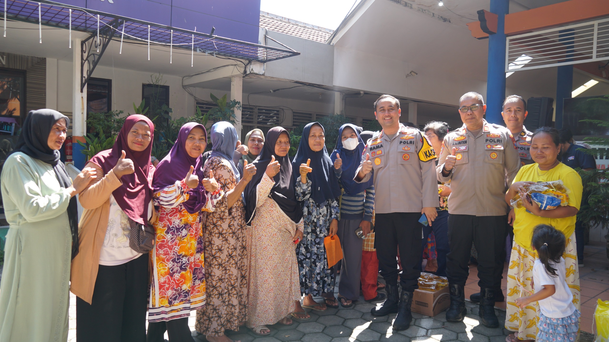 Kapolres Gresik beserta rombongan tiba di lokasi, langsung meninjau pelaksanaan bazar serta antrean masyarakat yang antusias membeli kebutuhan pokok dengan harga subsidi.