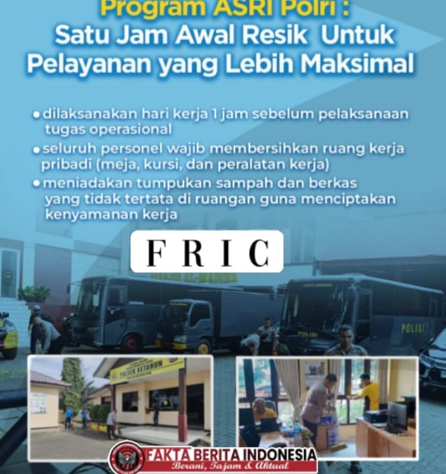 Faktaberitaindonesia.net, Jakarta, 22 Februari 2026 – Dalam rangka meningkatkan kualitas pelayanan kepada masyarakat serta menumbuhkan budaya kerja yang disiplin dan profesional, jajaran Kepolisian Republik Indonesia terus mengoptimalkan pelaksanaan Program ASRI (Satu Jam Awal Resik) sebagai bagian dari komitmen reformasi birokrasi dan peningkatan kinerja institusi.