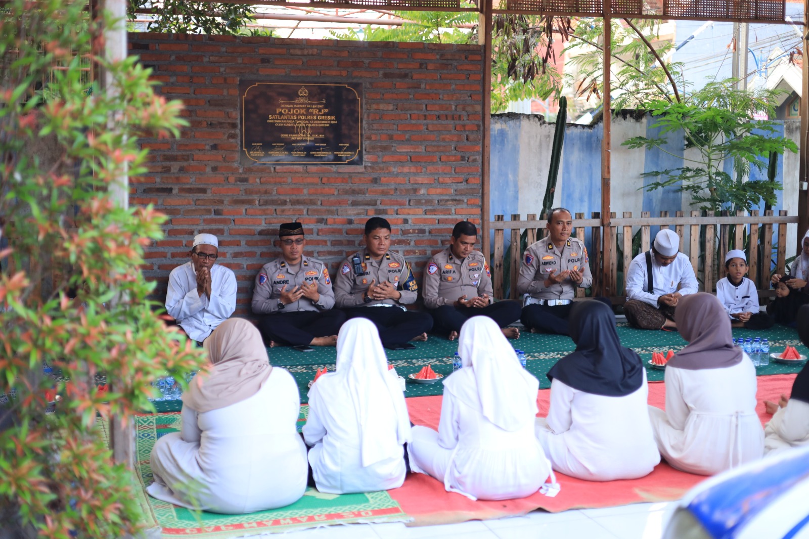 Lantunan ayat suci Al-Qur’an menambah kekhusyukan sore itu, mengiringi kebersamaan antara anggota kepolisian dan para santri yatim.