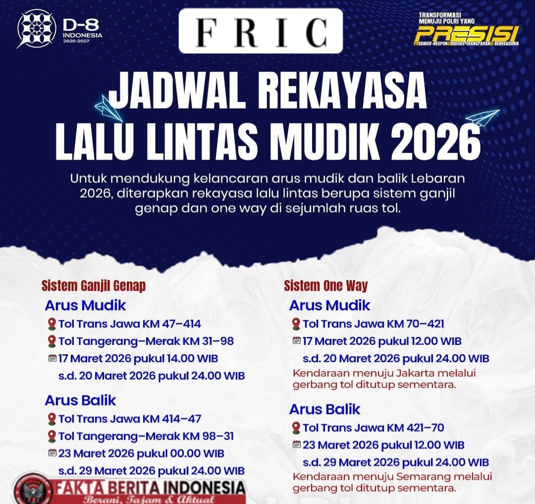 Faktaberitaindonesia.net, Jakarta, – Menjelang arus mudik Hari Raya IdulFitri 2026, pemerintah bersama jajaran kepolisian dan pemangku kepentingan transportasi telah menyiapkan berbagai langkah strategis guna memastikan kelancaran arus kendaraan serta meningkatkan keselamatan masyarakat yang melakukan perjalanan pulang kampung.