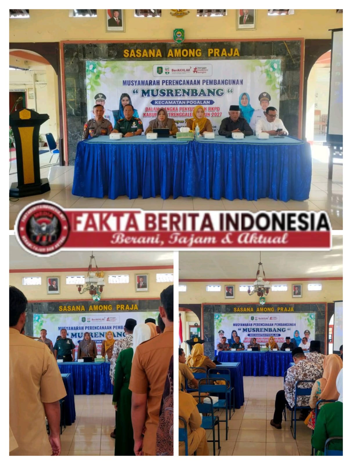 Faktaberitaindonesia.net, Trenggalek – Sinergitas TNI–Polri bersama Pemerintah Daerah kembali menunjukkan komitmen nyata dalam mendukung percepatan pembangunan wilayah binaan. Hal ini terlihat dari kehadiran Danramil 0806-02/Pogalan Lettu Cke Suroso yang bersinergi dengan jajaran Polsek Pogalan serta Pemerintah Kecamatan Pogalan dalam kegiatan Musyawarah Perencanaan Pembangunan Kecamatan (Musrenbangcam) Pogalan Tahun 2026. Kegiatan tersebut menjadi bagian penting dalam rangka penyusunan Rencana Kerja Pemerintah Daerah (RKPD) Kabupaten Trenggalek Tahun 2027.