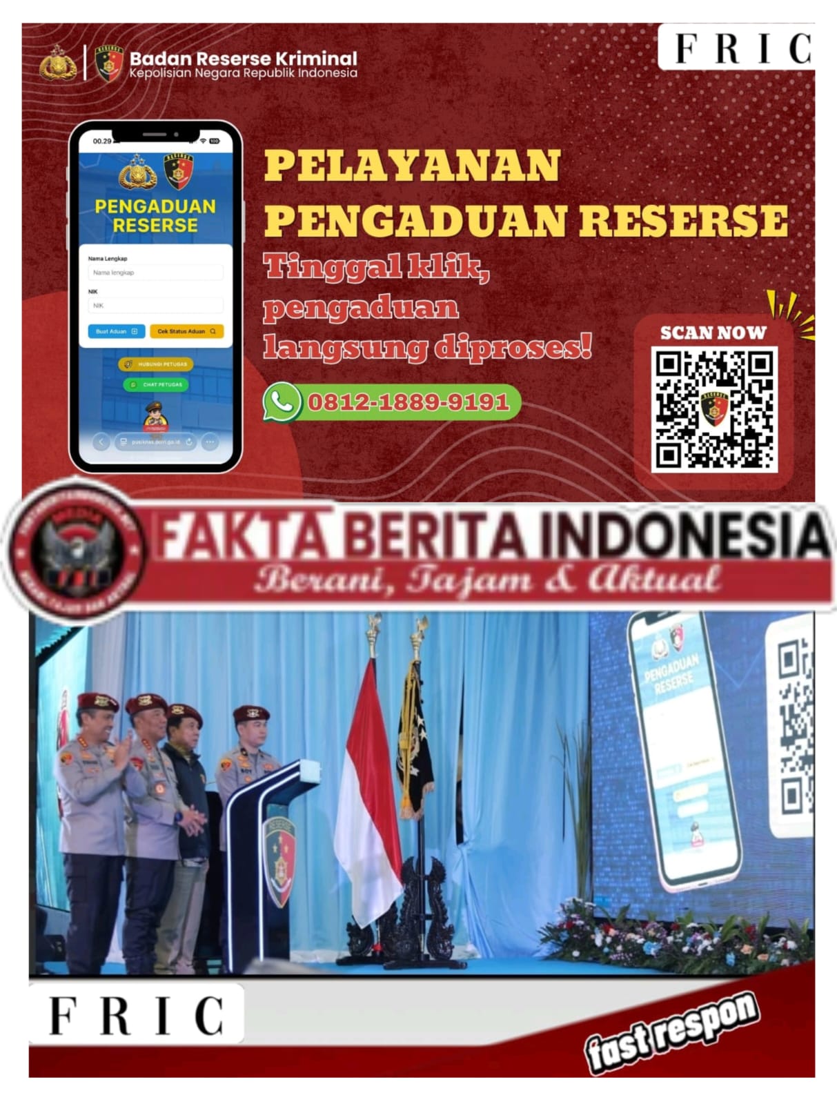 Faktaberitaindonesia.net, JAKARTA – Wakil Kepala Kepolisian Republik Indonesia (Wakapolri), Prof Dr Dedi Prasetyo, S.H, MHum, Msi, MM, meresmikan Launching Aplikasi Layanan Pengaduan Reserse Bareskrim Mabes Polri, Jumat (12/12/2025).